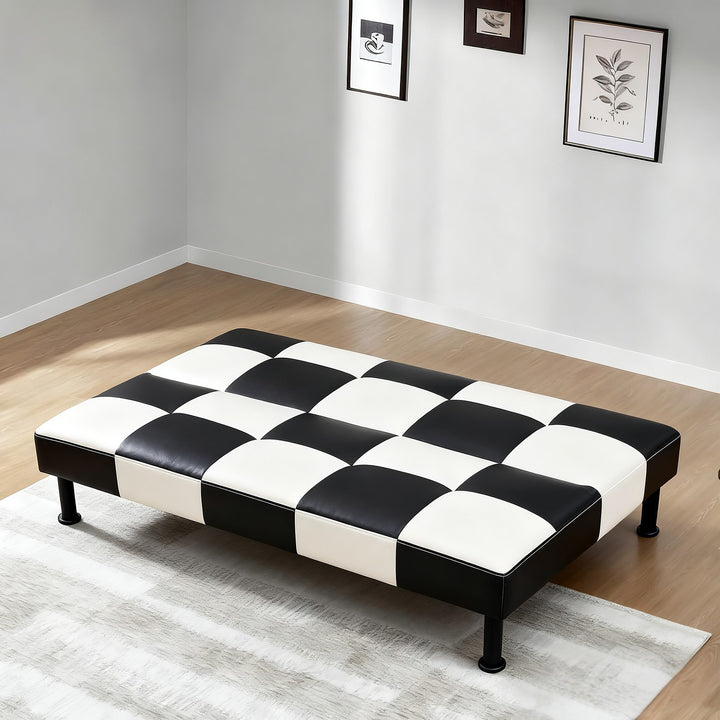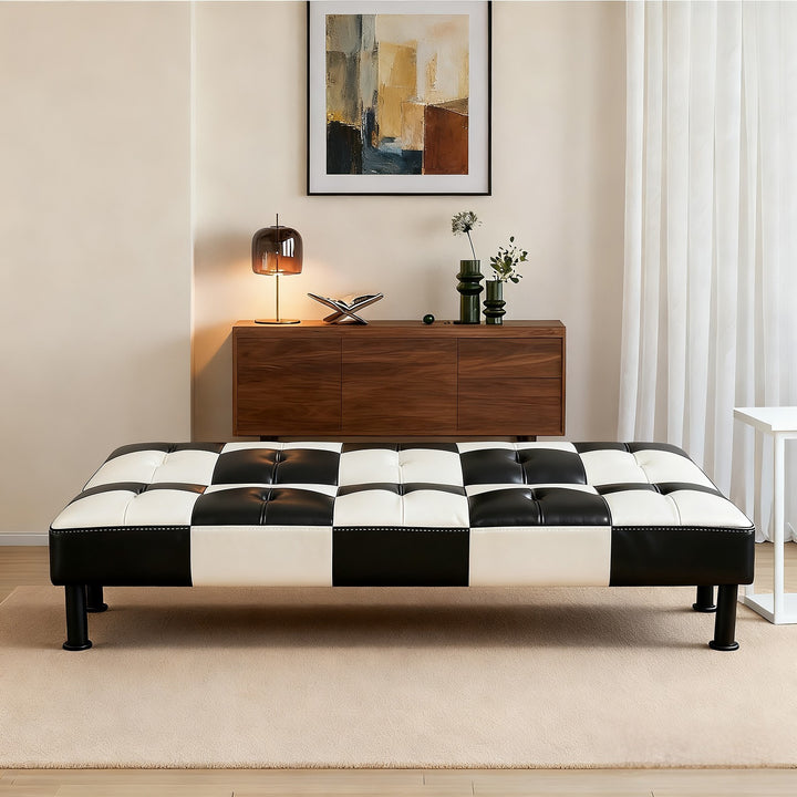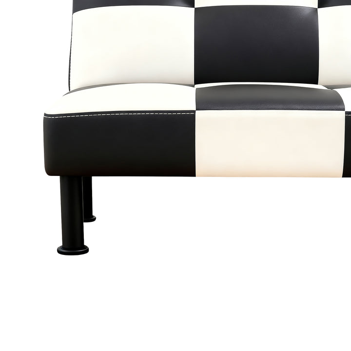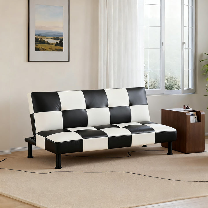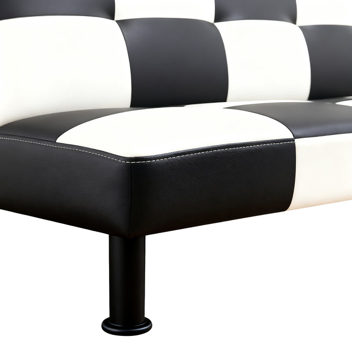 33''W Faux Leather Convertible Futon Sofa Bed,Adjustable Sleeper Sofa, Black and White