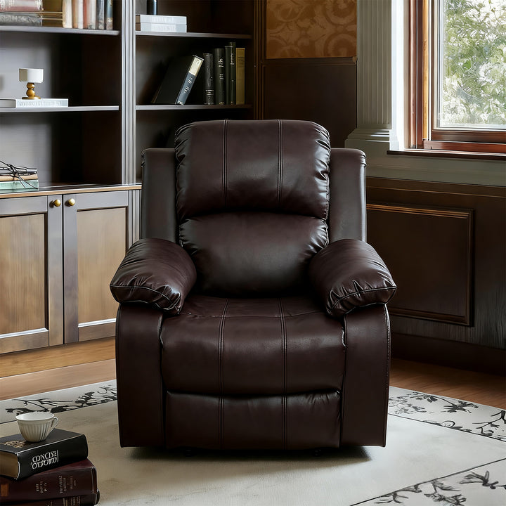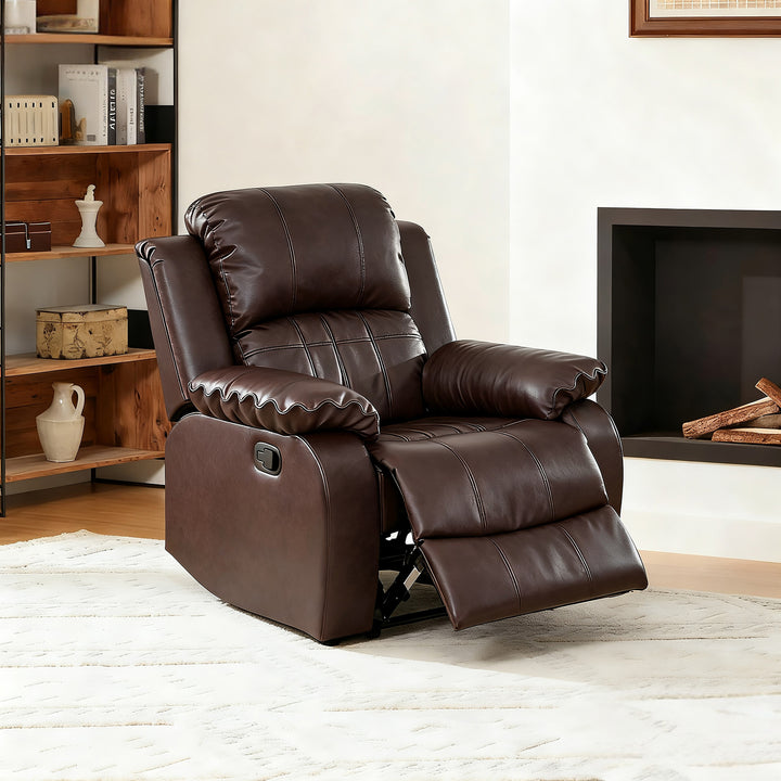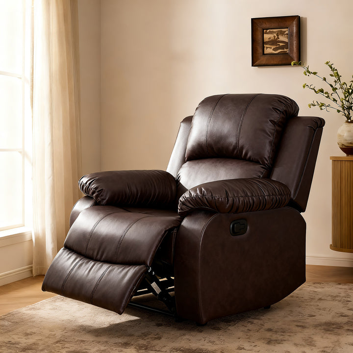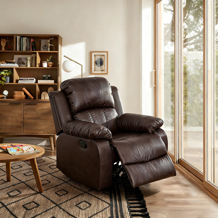 Faux Leather Manual Recliner Chair, No Rocker Lazy Boy Sofa, Brown
