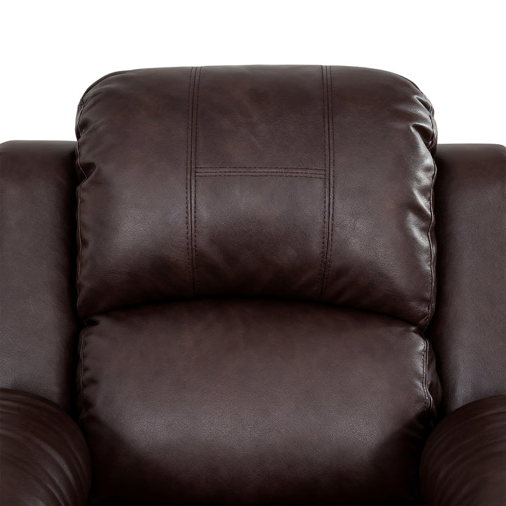 Crafted with skin-friendly, breathable faux leather for a soft touch, this reclining living room chair is designed to provide ample lumbar and back support with its generously padded cushions. Built with durability in mind, it features robust construction that ensures reliable stability, standing up to regular use while maintaining its appeal as a lasting centerpiece in your home.