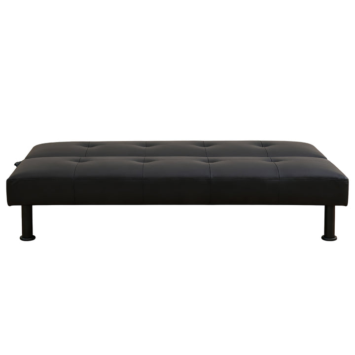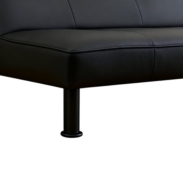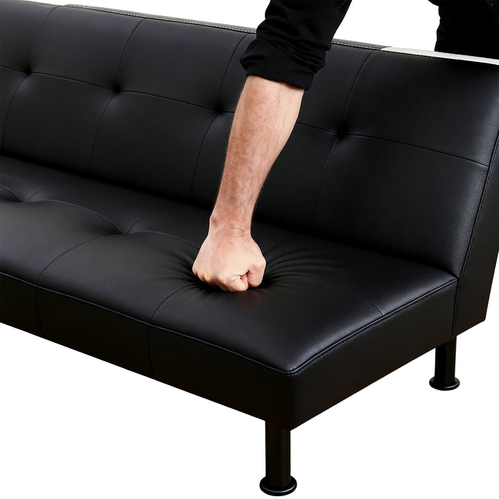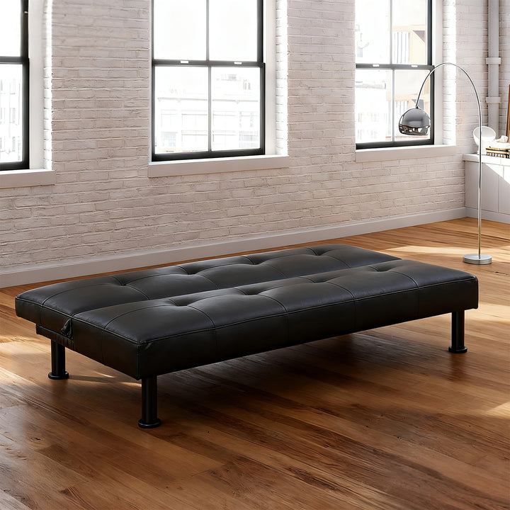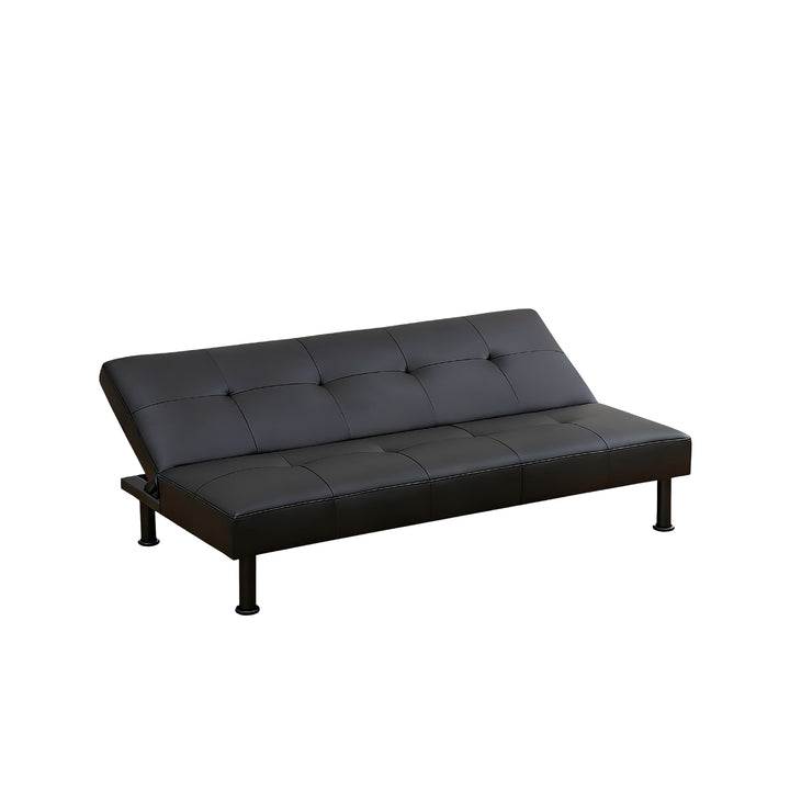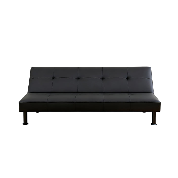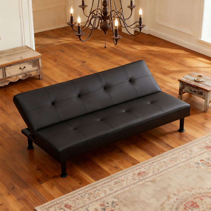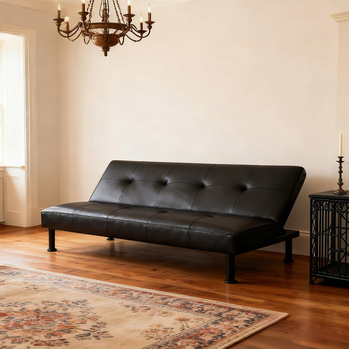 Modern Black Faux Leather Adjustable Sleeper Sofa,Convertible Futon Sofa Bed